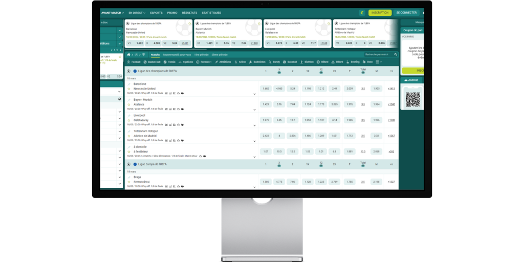 L’app reprend l’intégralité des fonctionnalités du site : paris avant-match, paris en direct, suivi des cotes, gestion du compte et dépôts/retraits. La navigation est fluide et l’interface s’adapte parfaitement à tous les formats de smartphones.